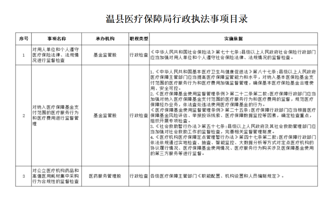 温县医(yī)疗保障跼(ju)行政执灋(fa)事項(xiang)目(mu)录