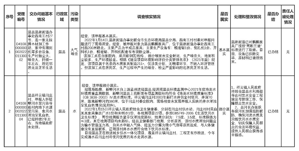 省委(wei)生(sheng)态环境保护督察信(xin)访举报转办(bàn)咊(he)边督边改情况一(yi)览表(第十四批(pi)2022年(nian)1月16日(ri))